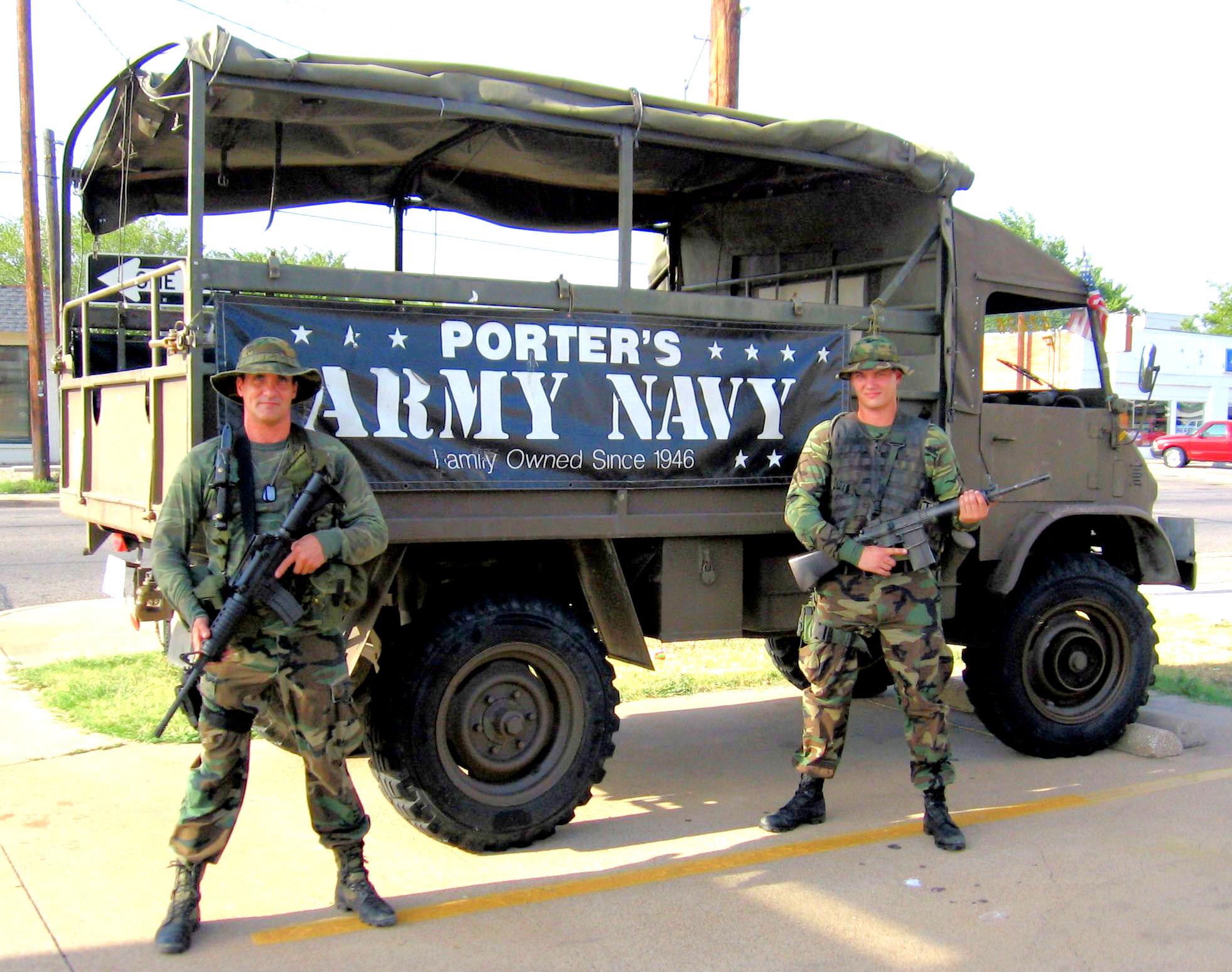 Porter’s Army Navy was started as a War Surplus business in 1946 by Ed Porter. Ed soon sent for his father, Everett Porter, to come and run the business and enlisted the help of his brothers scattered across the United States. In time, Elmer, Leo, John, Joe, and Larry Porter all worked at the store. The brother Elmer (Steve’s father) managed the store for several years and added the pawn business, establishing Irving’s first Pawn shop. Soon Elmer purchased the adjacent land and opened Irving Marine Supply. The brother Larry purchased the Army Navy & Pawn business and ran it for the next 25 years. In 1979, Larry retired and sold the store to Steve and Cindy Porter, who are still the owners today.